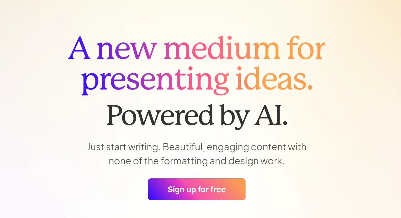 You provide a topic or some existing text. The artificial intelligence engine then takes over. It structures the narrative, writes engaging copy, and applies a visually coherent design.